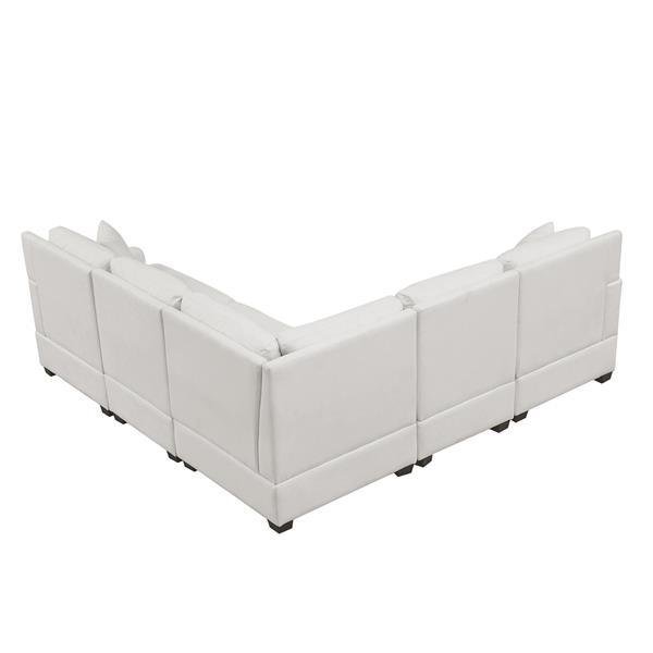 Weights & DimensionsOverall87.8''Wx87.8''Dx33.8''HSeat Depth22.4''Seat Hight18.1''Arm Height22.8''SpecificationsProduct TypeSofaDesignStandardSeating Capacity4-5Fabric MaterialPolyesterFrame MaterialPlywood wooden frameLeg MaterialPlasticSeat Fill MaterialFoam+Pocket springSeat ConstructionSinuous SpringsBack Fill MaterialPP CottonRemovable CushionsYesRemovable Cushion CoverYesWeight Capacity220 lbs/seatSupplier Intended and Approved UseResidential UseCountry of OriginChinaL-Shaped Design: Our sectional sofa features an L-shaped configuration, providing ample seating space and optimizing the utilization of your living area. This design allows you to make the most of your room, creating a comfortable and stylish seating arrangement.Solid Frame: We understand the importance of durability and longevity in furniture. That's why our sectional sofa is built with a solid frame, ensuring stability and sturdiness. You can rest assured that this sofa will withstand the test of time and provide years of reliable use.Free Combination: With our sectional sofa, you have the freedom to customize your seating arrangement to suit your preferences. The modular design allows for easy rearrangement of the individual sections, enabling you to create a configuration that perfectly fits your space and accommodates your needs.Two Tossing Cushions: We believe that comfort should never be compromised. That's why our sectional sofa comes with two tossing cushions, adding an extra layer of coziness to your lounging experience. These cushions are thoughtfully designed to provide optimal support and relaxation.Stylish and Versatile: Our sectional sofa boasts a contemporary and sleek design, making it a stylish addition to any home decor. Whether your style is modern, traditional, or eclectic, this sofa seamlessly blends in with various interior aesthetics, elevating the overall ambiance of your living room.